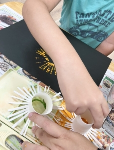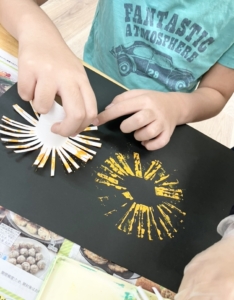トイレットペーパーの芯で花火の模様を描いてみました🎆