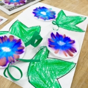 朝顔製作では、コーヒーフィルターにペンで自由に色を塗り、