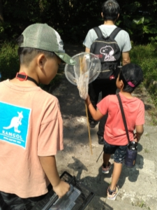 虫取りグループは枝に同化している虫を発見して