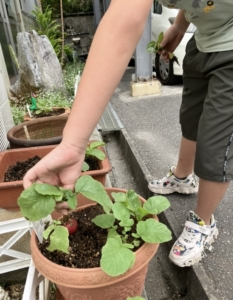 二十日大根・ベビーリーフ収穫🎵 2023年12月14日/カテゴリ: お知らせ, ピュア /作成者: jsdnfs2368ベビーリーフが大きく育ち収穫しました~🎵 11月頃種をまいた二十日大根も大きくなり収穫しました🎵 赤色の大根に興味津々😊✨ 立派な二十日大根が収穫できました!(^^)! https://team-hearts.jp/wp-content/uploads/2024/01/1.jpg 248 279 jsdnfs2368 https://team-hearts.jp/wp-content/uploads/2018/10/logo.png jsdnfs23682023-12-14 15:01:172024-01-24 15:01:34二十日大根・ベビーリーフ収穫🎵