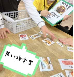 買い物学習は高学年のお兄さん達がレジ係を行い、電卓の使い方等を学びました!(^^)!