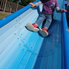 長い滑り台や、くるくる滑り台を何度も滑って遊ぶ元気な子ども達😊